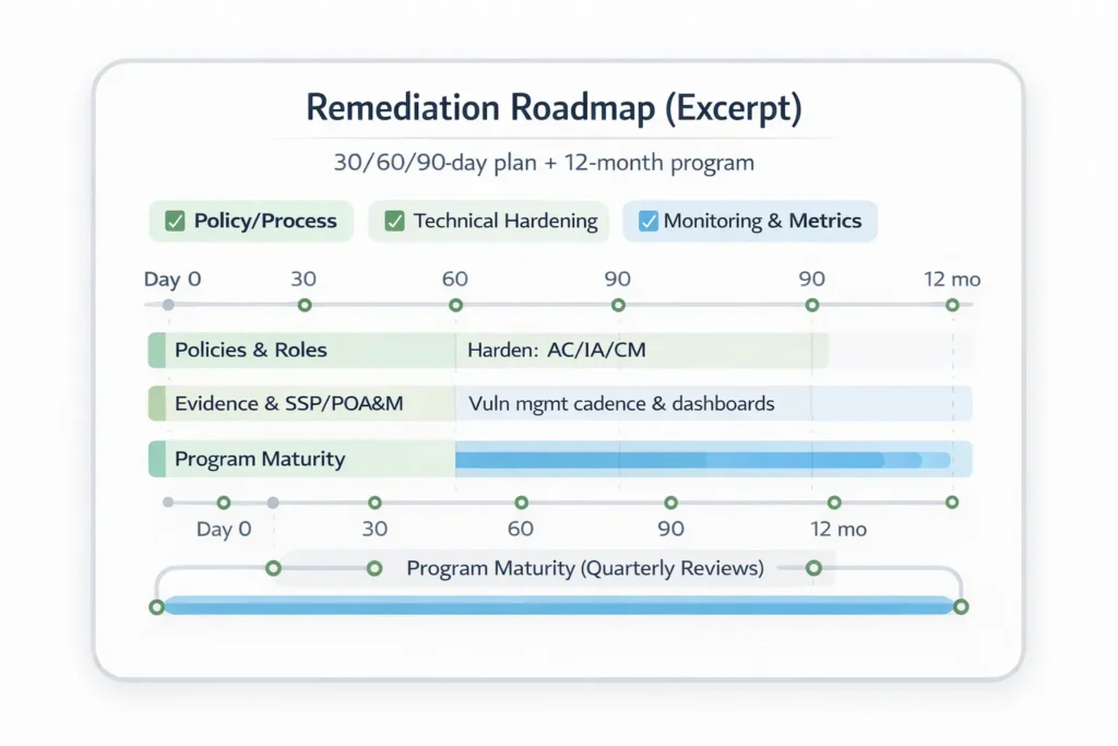 - 800-171 Gap Assessment (SMB scope): 2–4 weeks